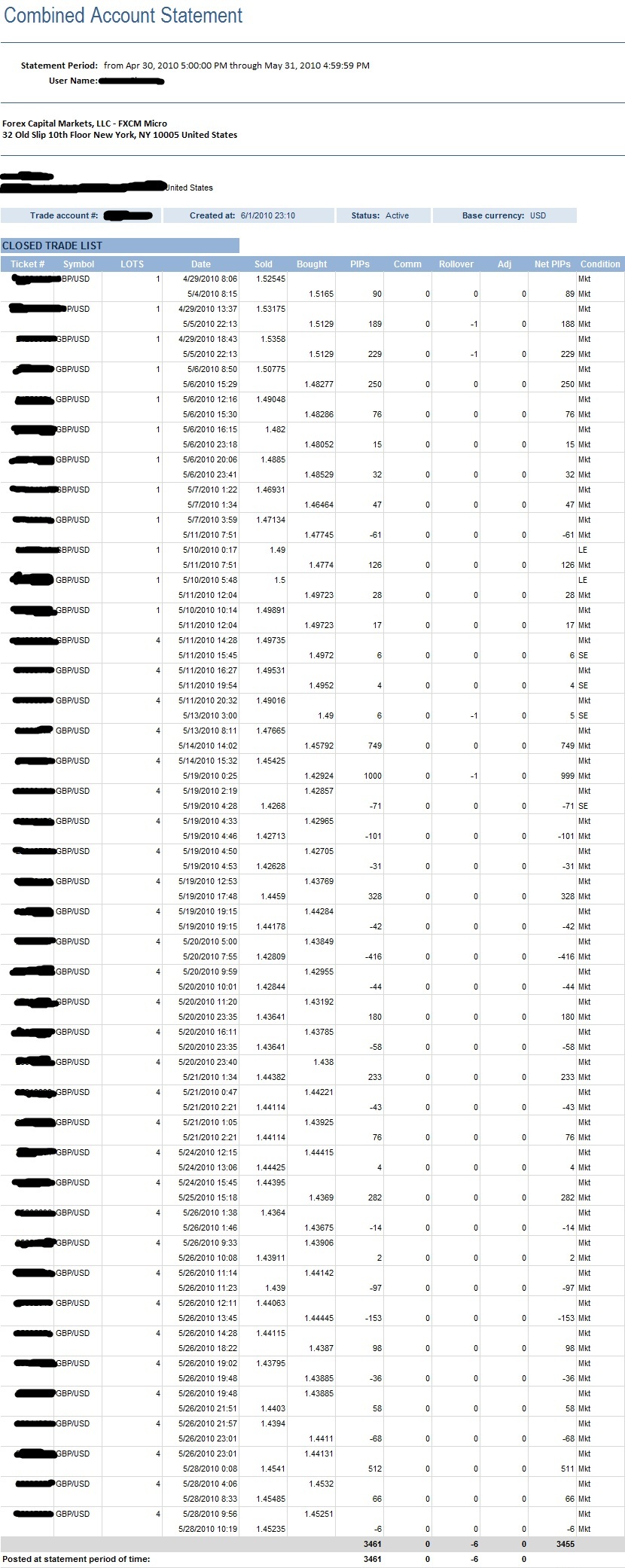 Here’s the good, the bad, and the ugly for the Month of May…Net Total 3,455 PIPs for the month of May. Although my forecasts were spot on, I got a little mental at times and didn’t enter exactly where I had forecasted. Here’s a snapshot of my trades for the month of May:
