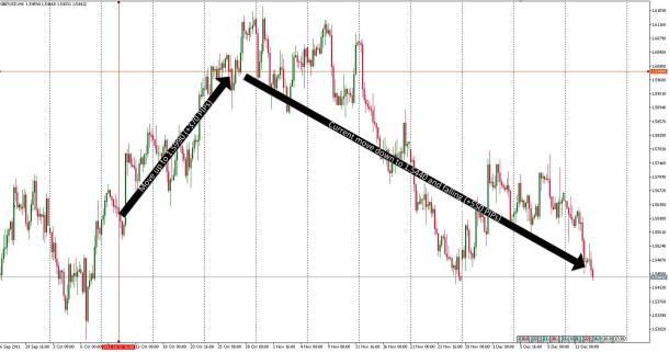 Back on October 11th, I wrote that the GBP/USD would be moving down over the next 6 months or so. But before that move happened, I wrote that the GBP/USD would move up to 1.5990.